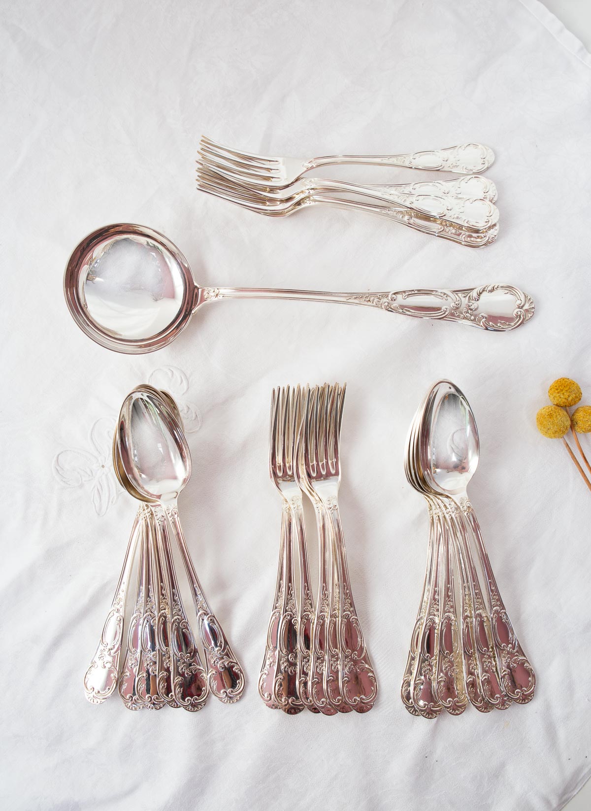 Los cubiertos de este juego van, como todas nuestras cuberterías, limpios y relucientes y listos para usar.