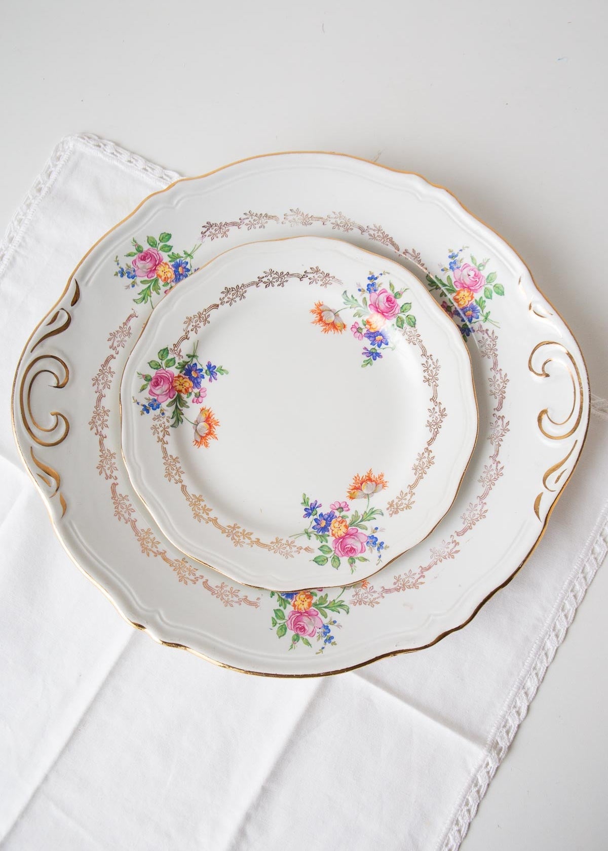 Medidas: ⌀ 18 cm (platos),  30,5 * 28,5 cm (fuente)