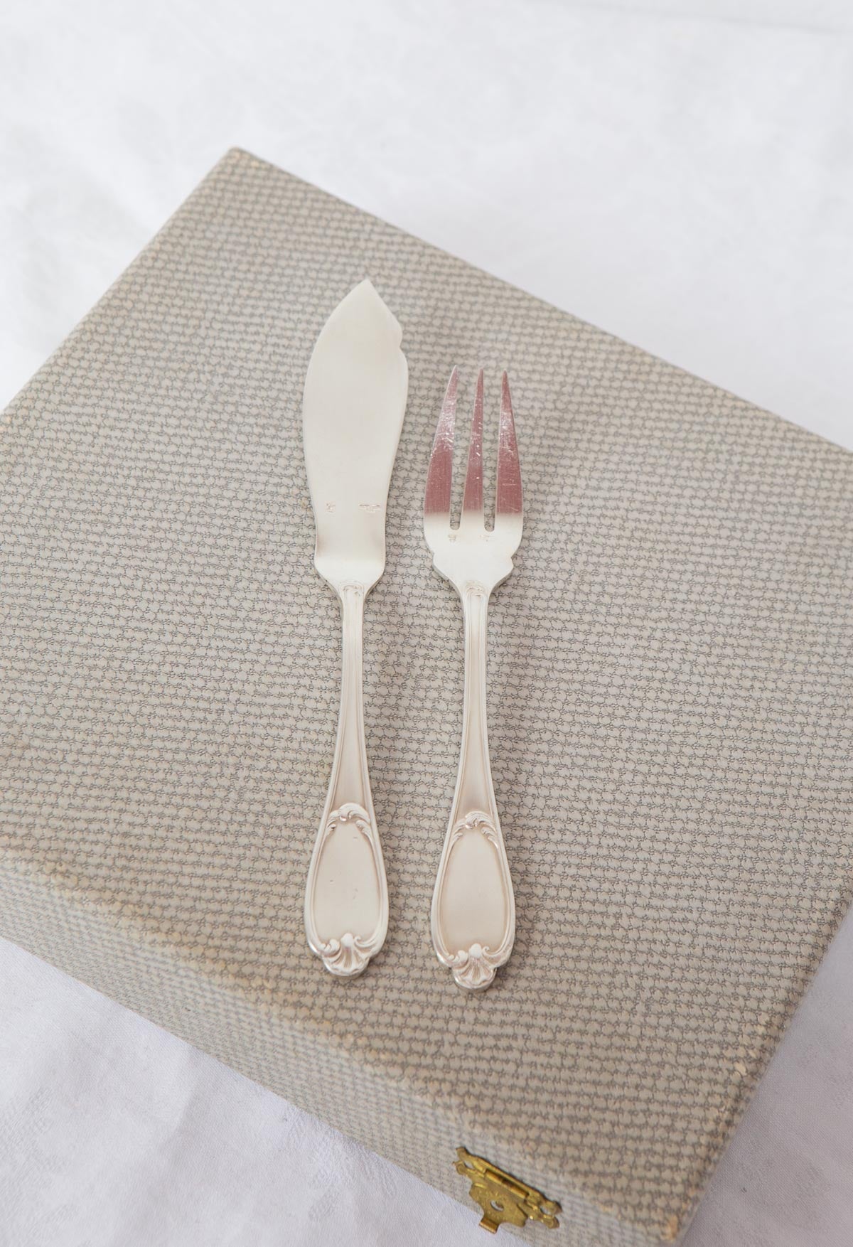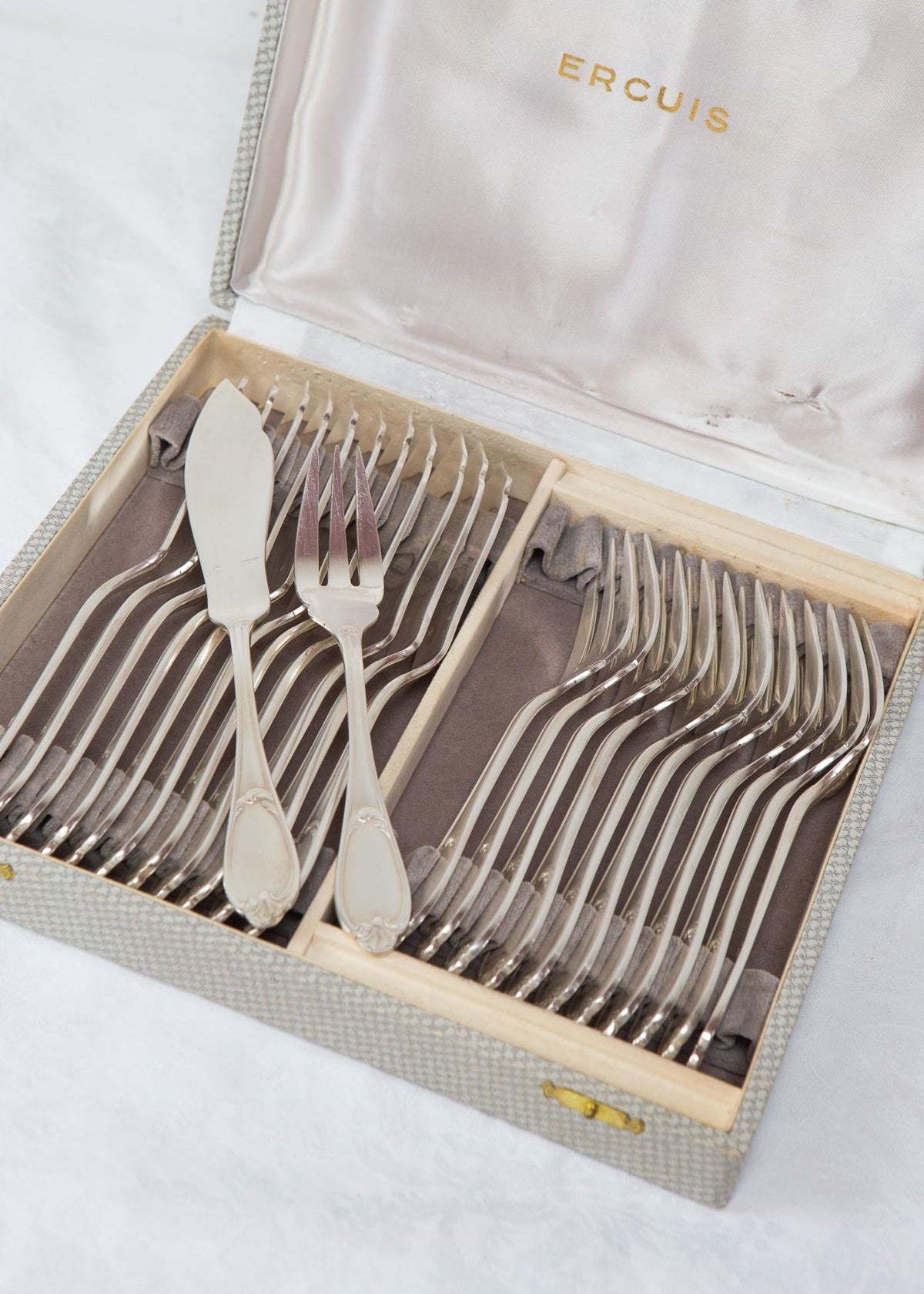 Ménagère à poisson pour 12 personnes signée ERCUIS c. 1940-50s.