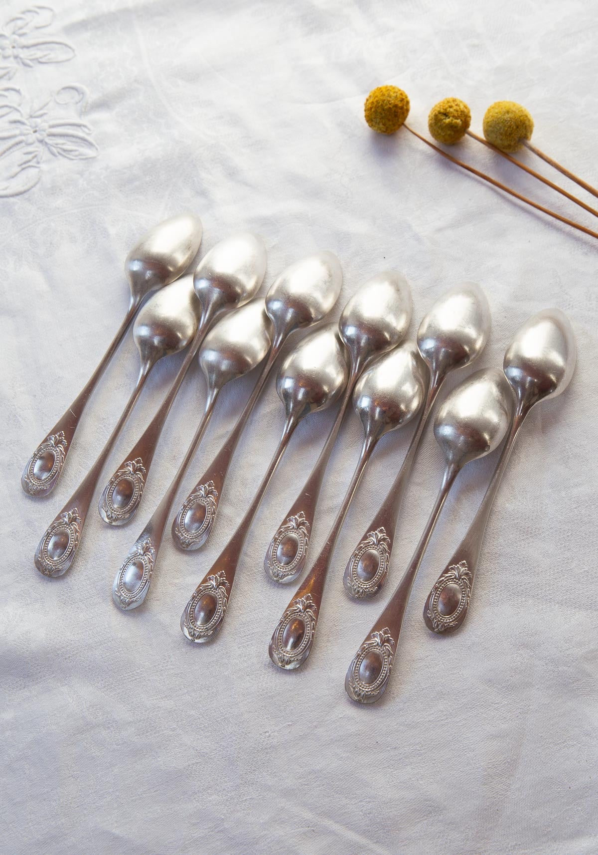 Juego 12 cucharillas antiguas "Medallón" Christofle metal argenté