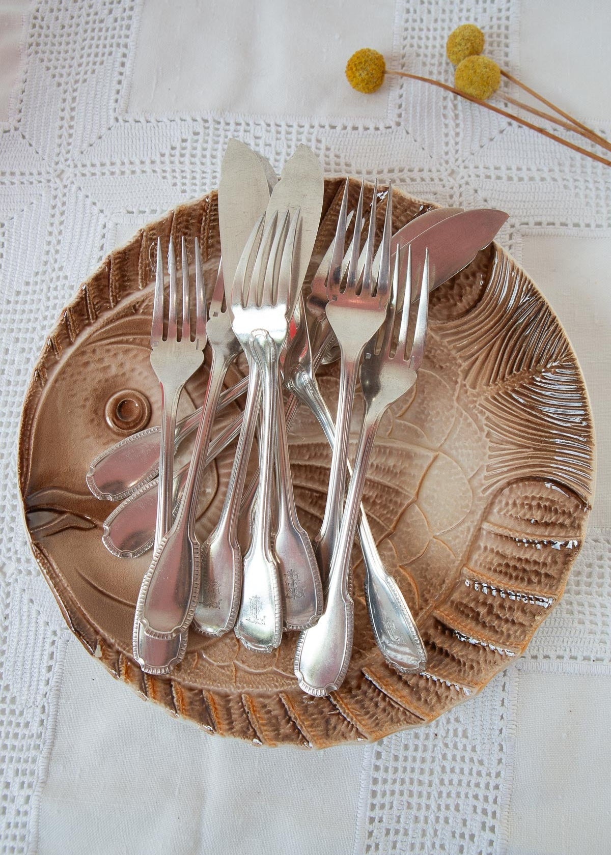 El dorado presenta desgaste pero están libres de muescas o golpes. Se enviará uno de regalo que tiene un "pelo" en el esmalte, es decir, se enviarán 7 piezas.