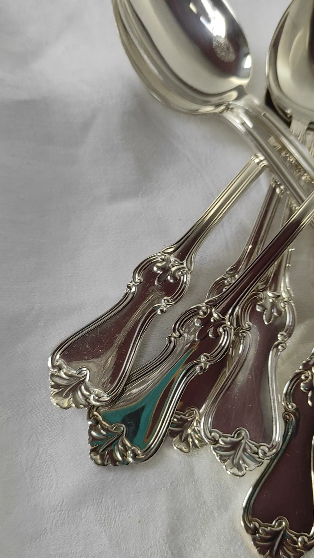 Juego de cubiertos suecos en metal con un baño de plata de gran calidad y de la firma GAB para 8 comensales. Son de la segunda mitad del s. XX. Las lamas de los cuchillos son de acero inoxidable de la mayor calidad. Están en un estado de conservación maravilloso, con apenas uso.