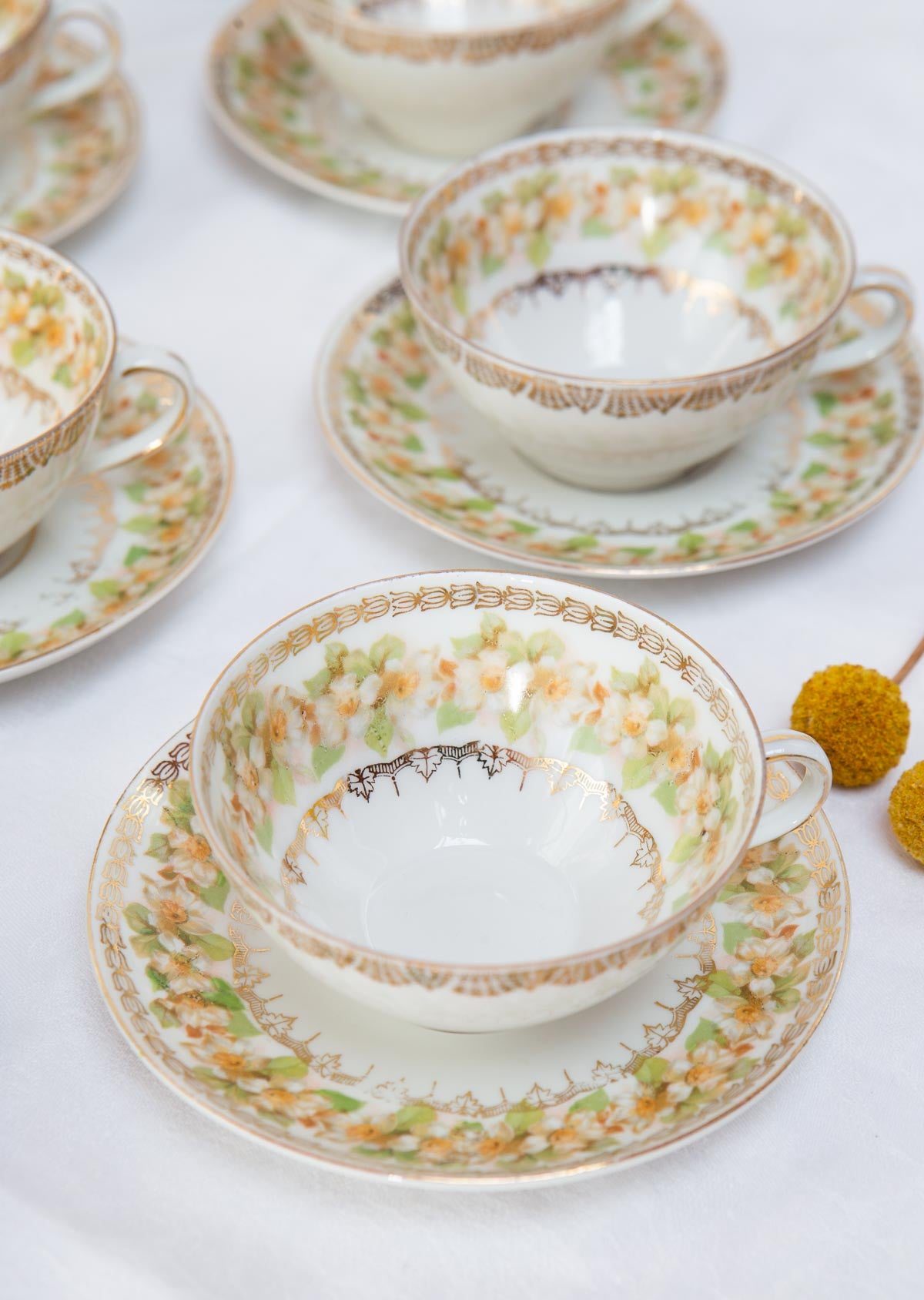 Vintage Czech Altrohlau MZ tea and dessert set c. 1920. 46 pieces in perfect condition. Gold a bit faded in some pieces. Dimensions: see Spanish description. Shipping costs will be added at checkout.