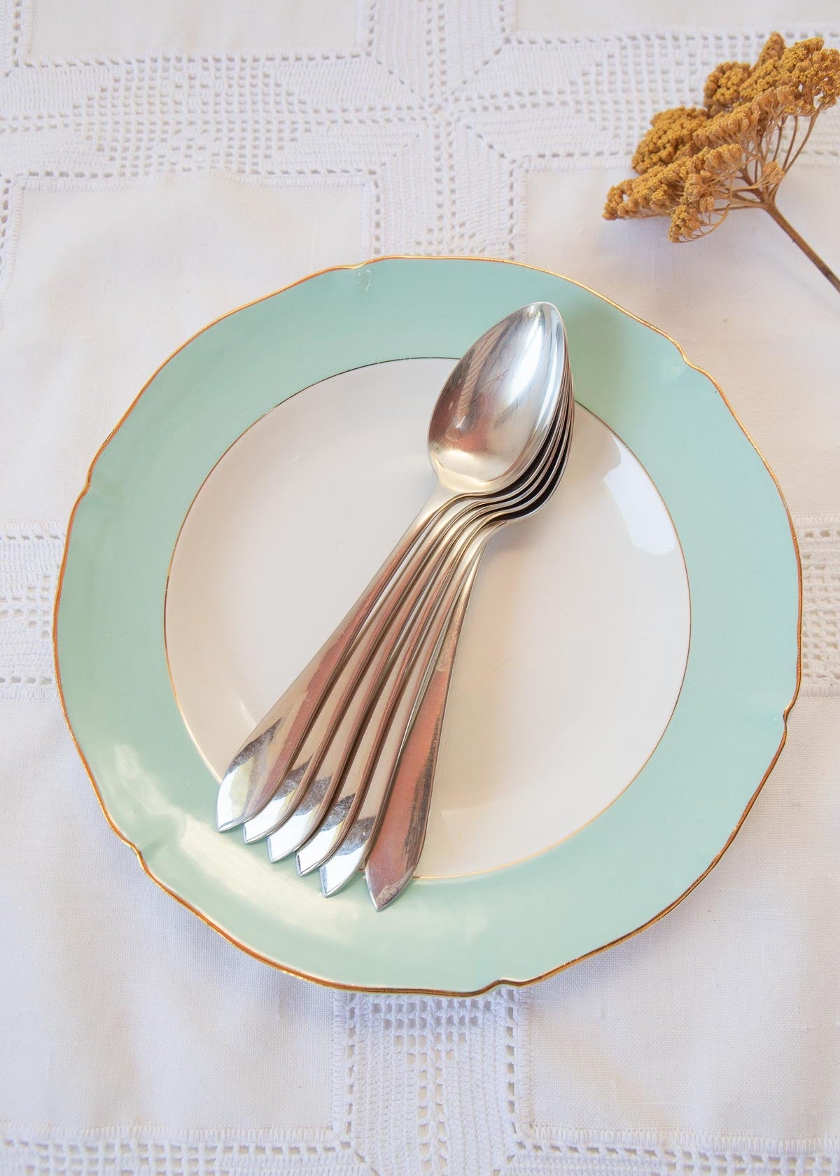 Set of 6 soup spoons (alpaca - nickel silver). Germany c. 1950s. Dimensions: 20,5. We ship worldwide. Shipping costs will be added at checkout.