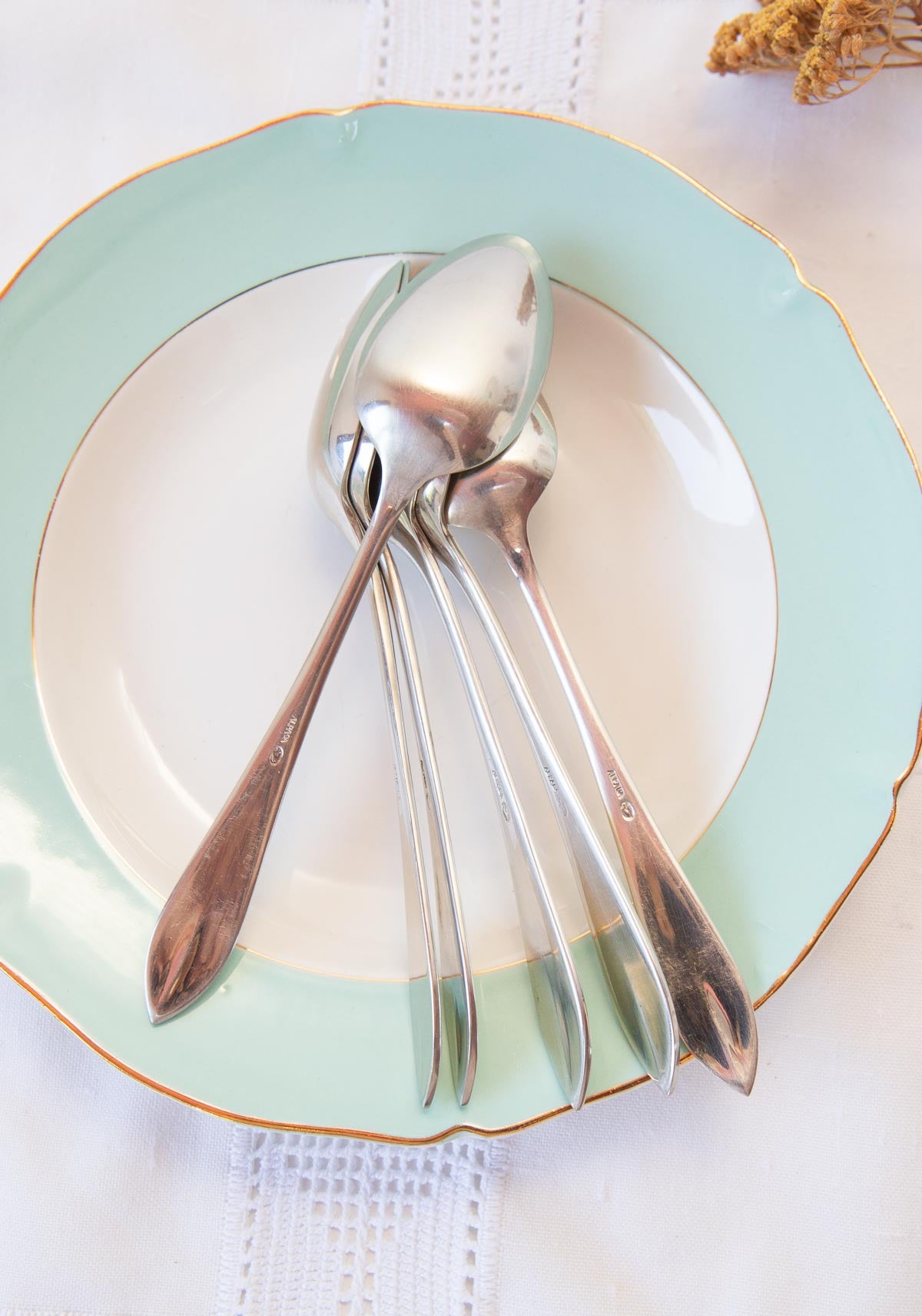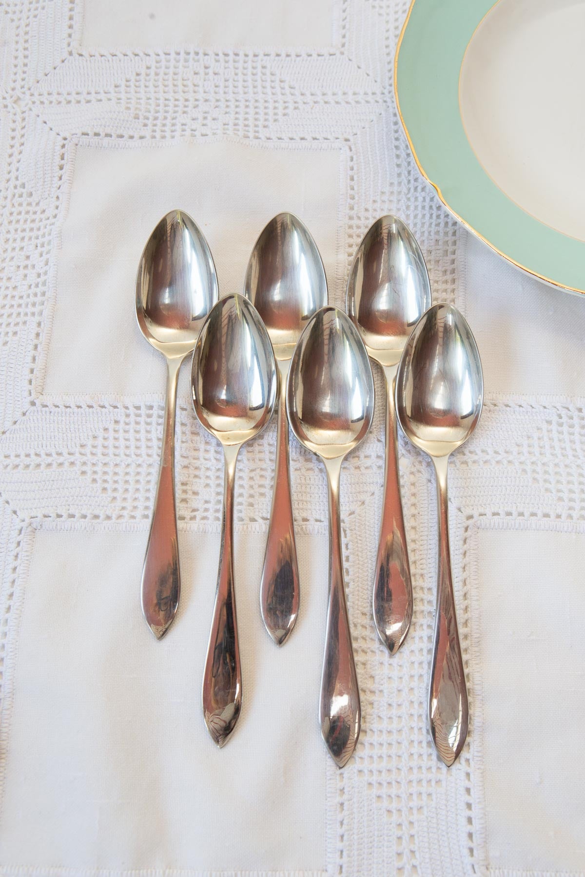 Juego 6 cucharas soperas alemanas Alpaca c.1950