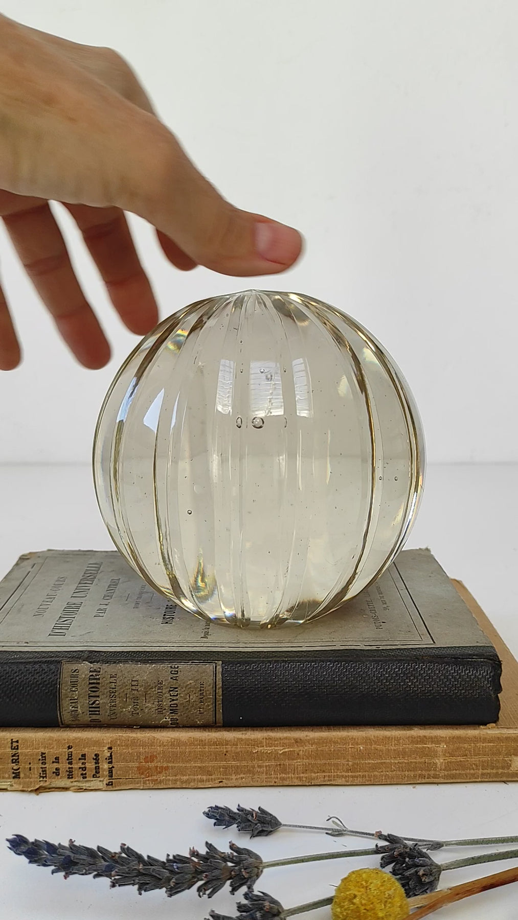 Vintage glass spheric paperweight. Great condition. Dimensions: 11,5 cm diameter. 2,1 kg . We ship worldwide. Shipping costs will be added at checkout.