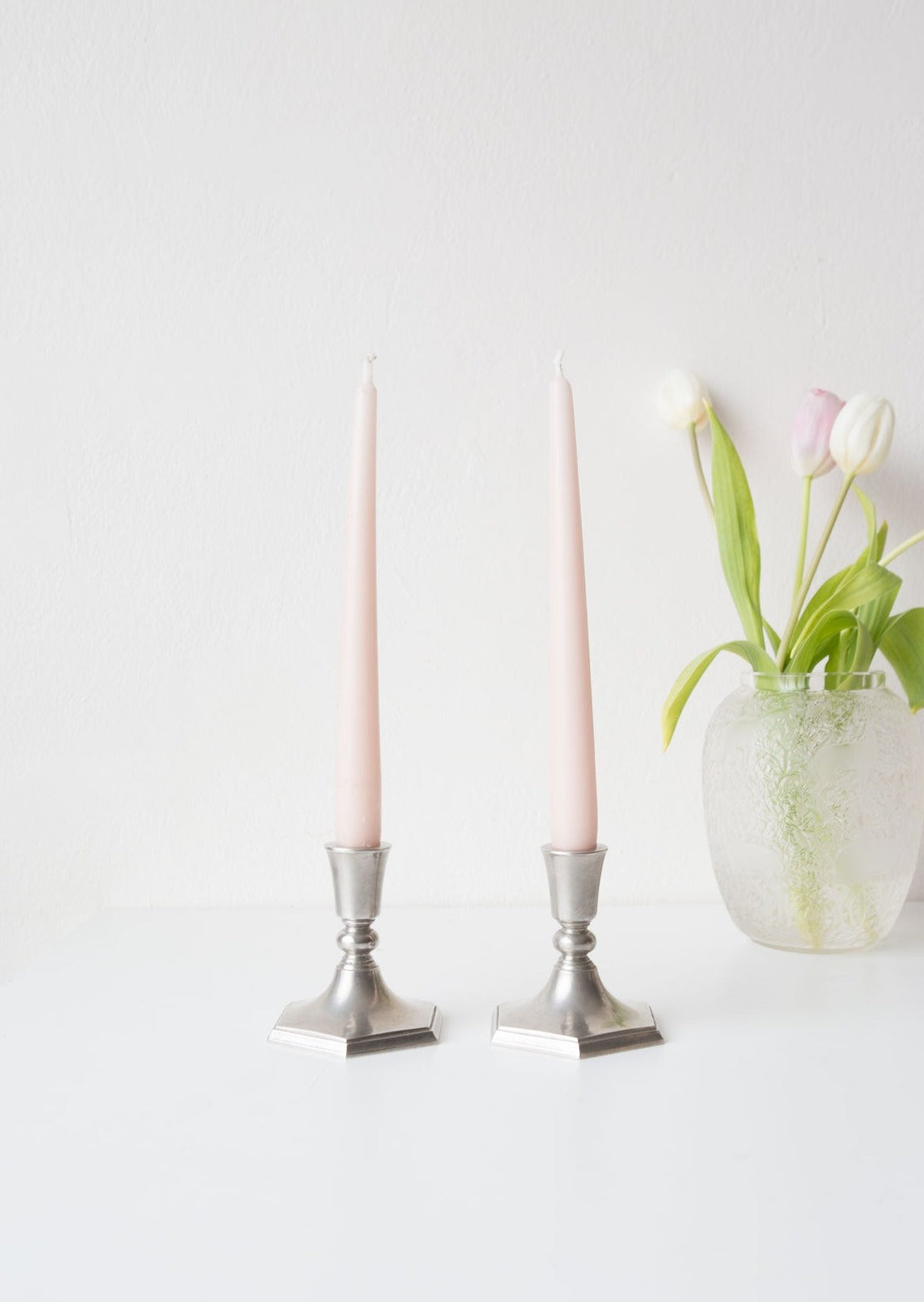 Pareja de antiguos candeleros franceses de bronce de estilo Restauration y de mediados del XIX. Nos encanta su estilo y su delicado trabajo de cincelado.