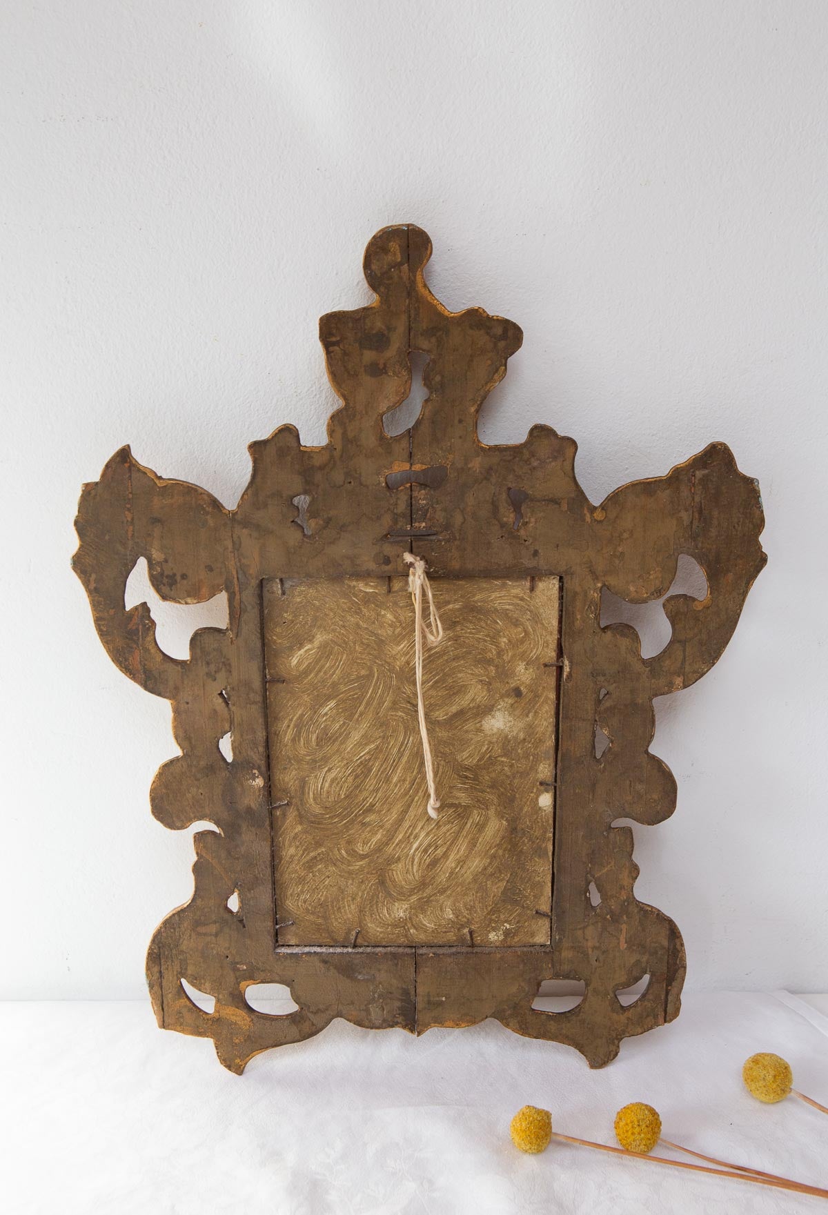 Antiguo espejo francés de madera tallada dorado al oro fino (38,5*29,5 cm)