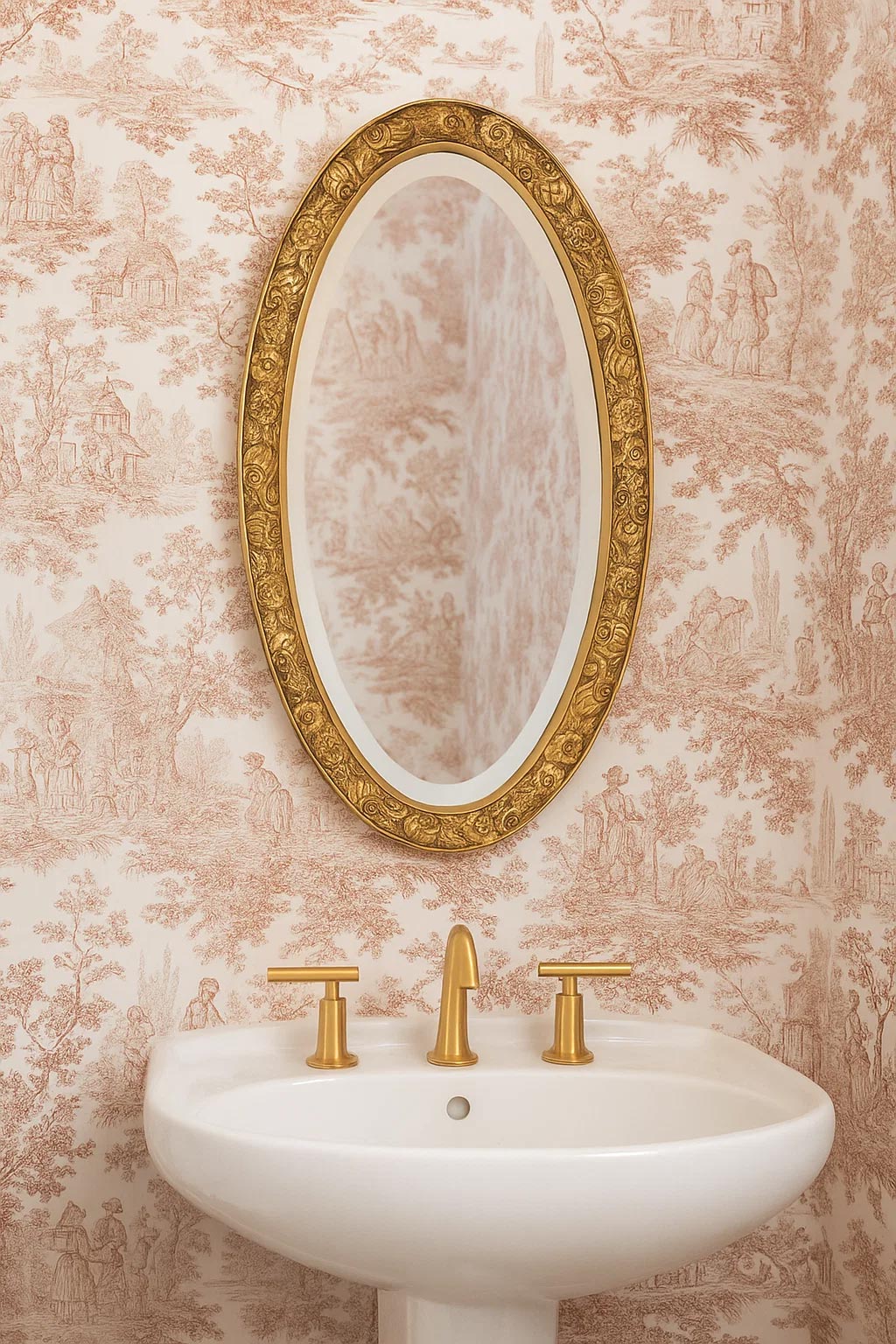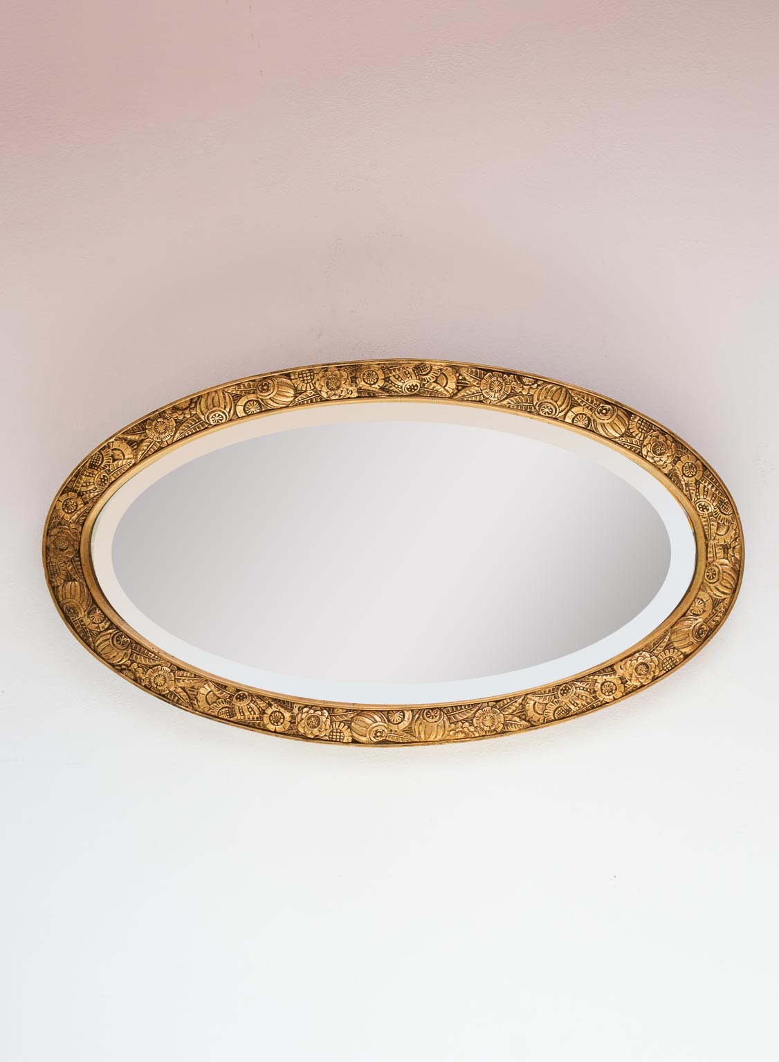 Espejo dorado francés ovalado estilo art decó c. 1940/50s (74,5*41 cm)