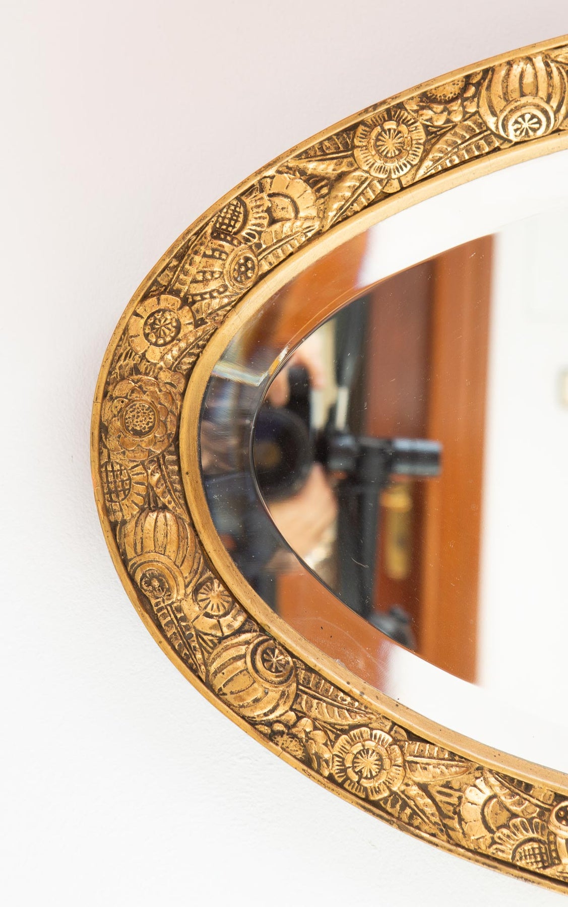 SOLD Antique French art deco mirror. 40s/50s. Beveled glass. Original gilding. Dimensions: L 74,5 cm, H 41 cm, D 5 cm. We ship worldwide. Shipping costs will be added at checkout.