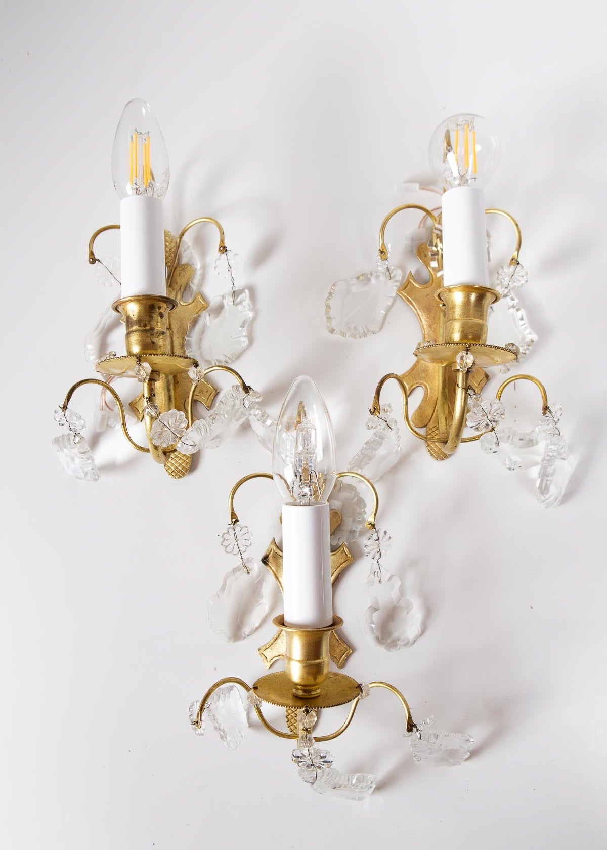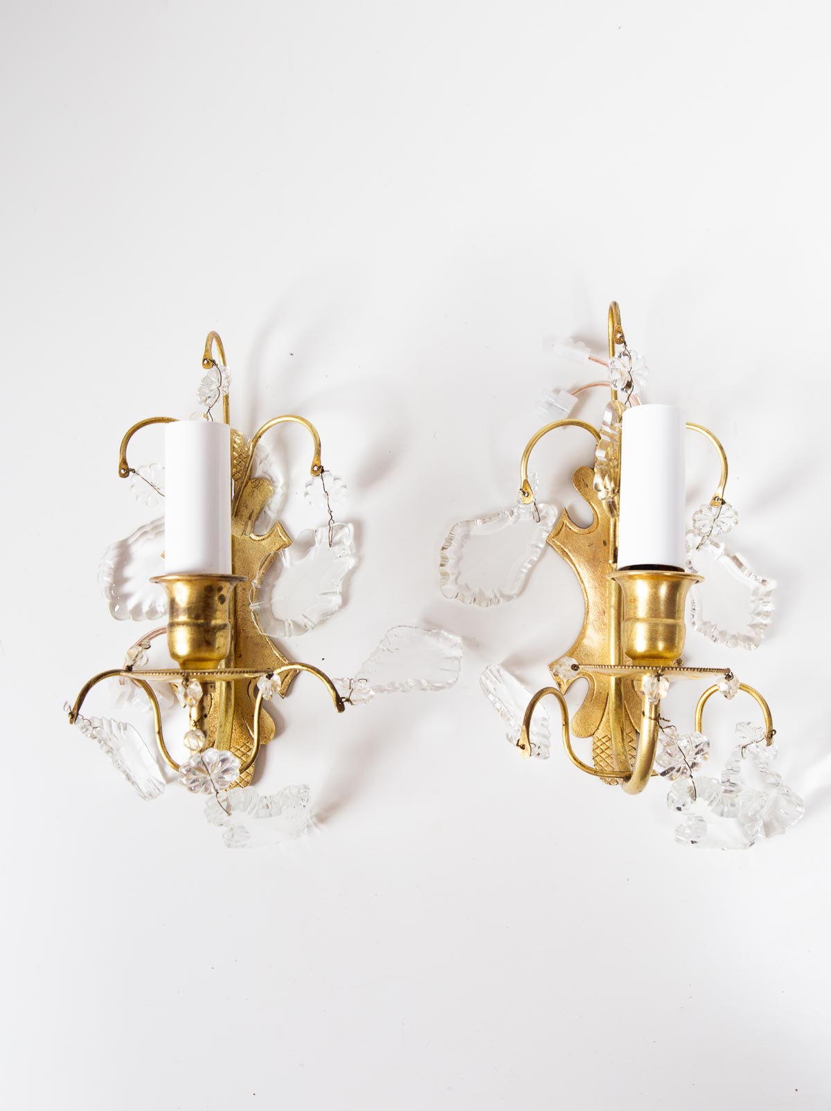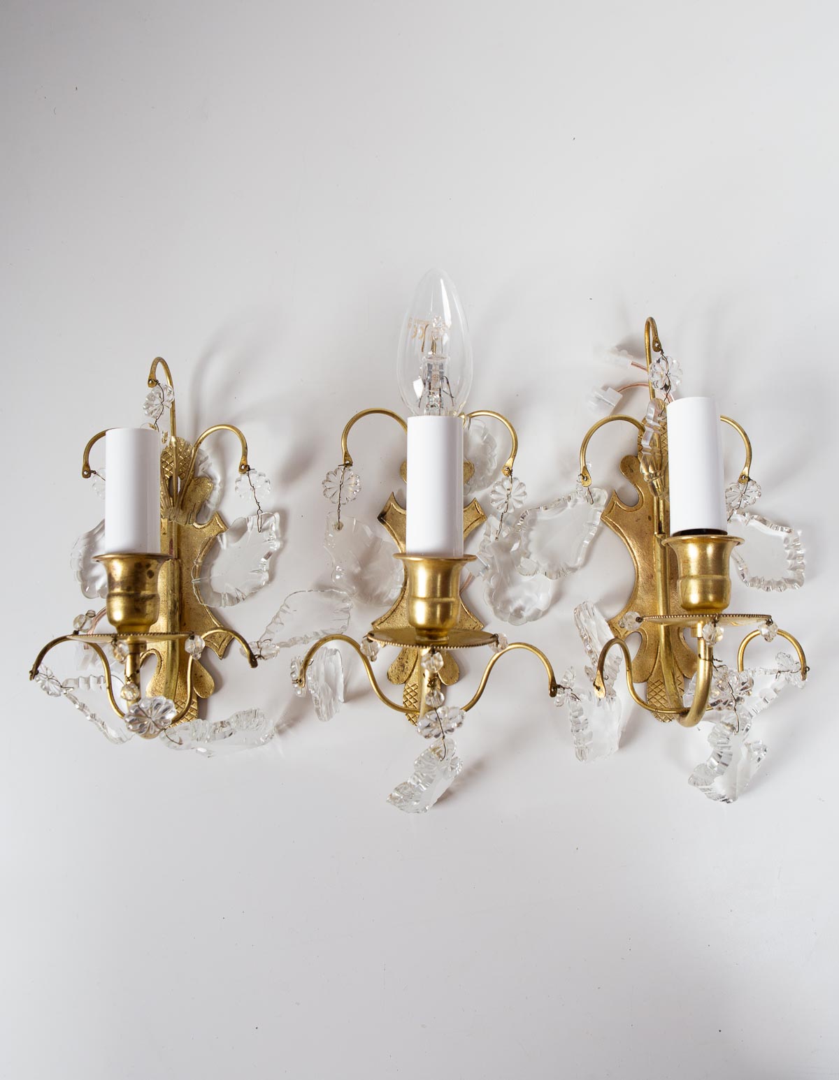 Apliques vintage franceses latón y cristales (x UNIDAD)