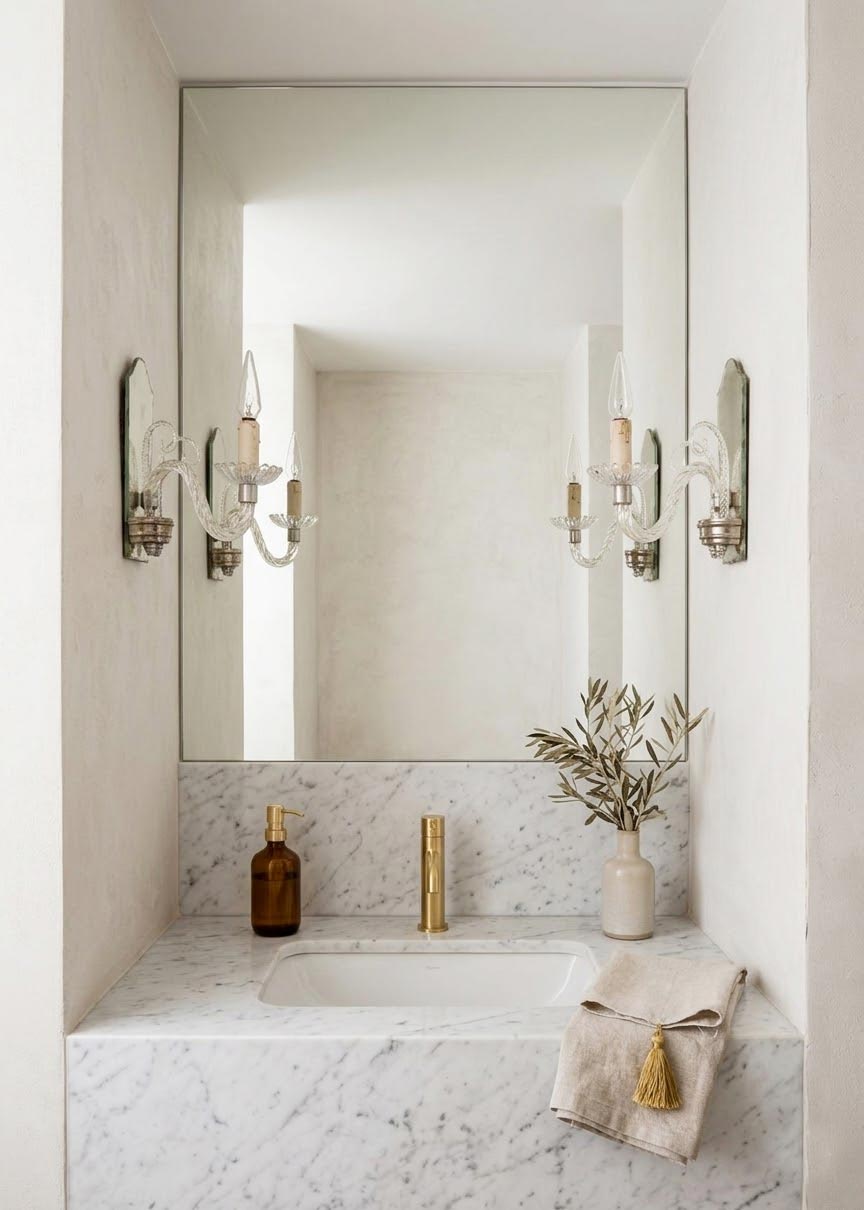 Pareja de apliques italianos de estilo veneciano de aprox. 1950s realizados con espejo y cristal. Nos encanta el detalle de las dos pequeñas espirales de cristal de Murano situadas a ambos lados del brazo central. Los cristales están impecables y funcionan perfectamente. Ideales para colocar a ambos lados de un espejo en un baño, sobre las mesitas de noche o en un recibidor. PRECIO DE LA PAREJA