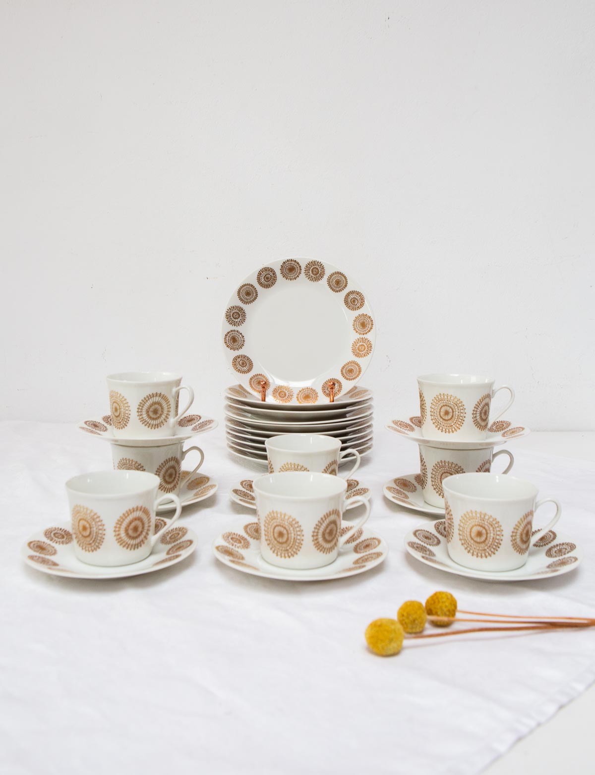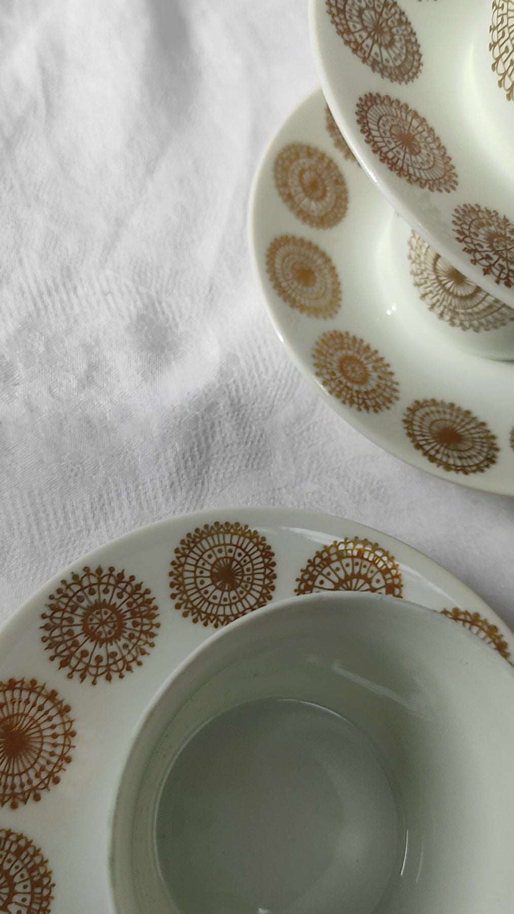Juegos de café y postre noruegos Porsgrunds oro fino 1969 (8 DISPONIBLES)