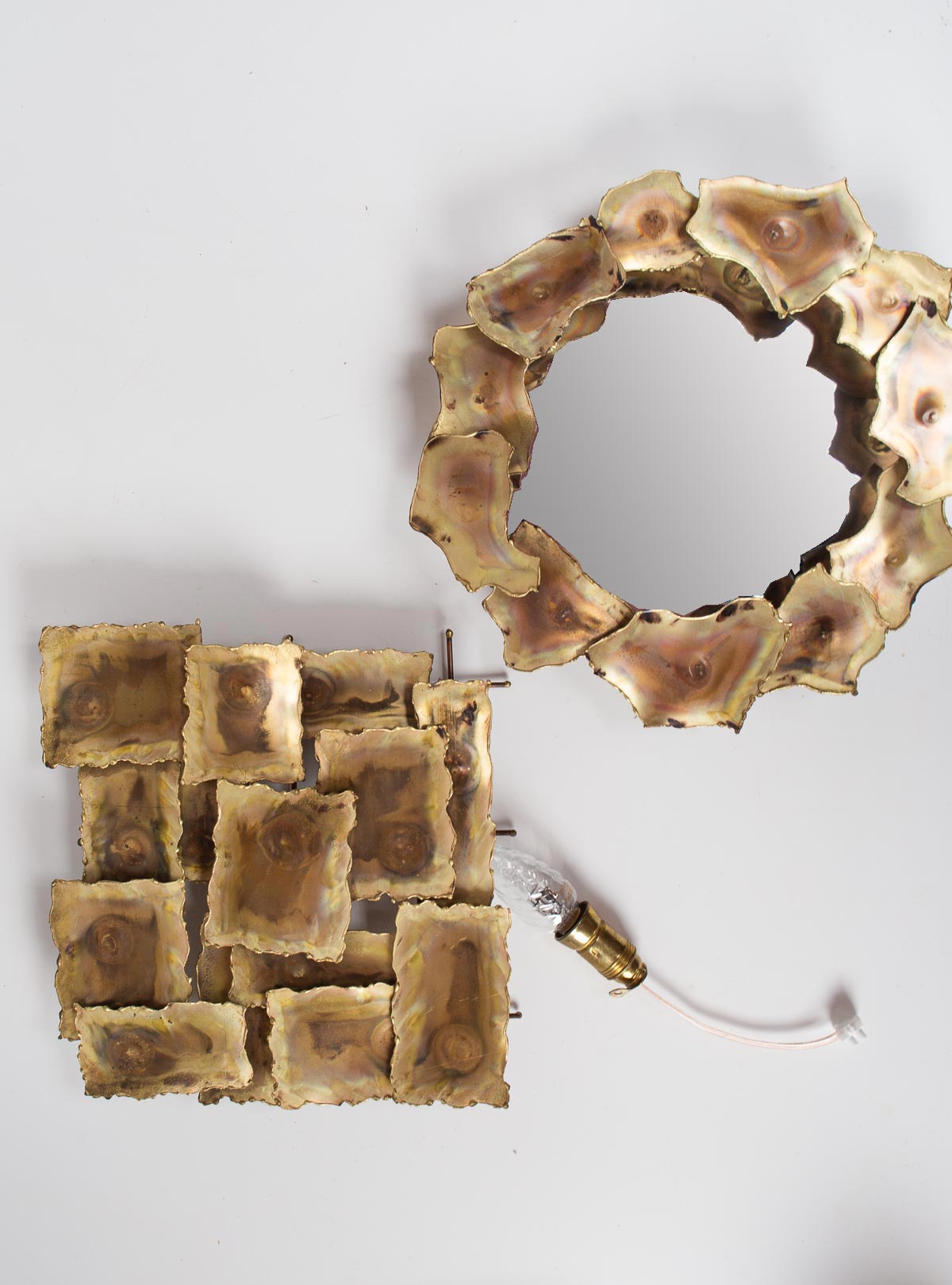 Vintage wall art or wall light. USA. c. 1970s. Brass. Mint condition. we also have the matching mirror ref. 6223. Dimensions: H 5 cm, 28*28 cm. Shipping costs will be added at checkout.