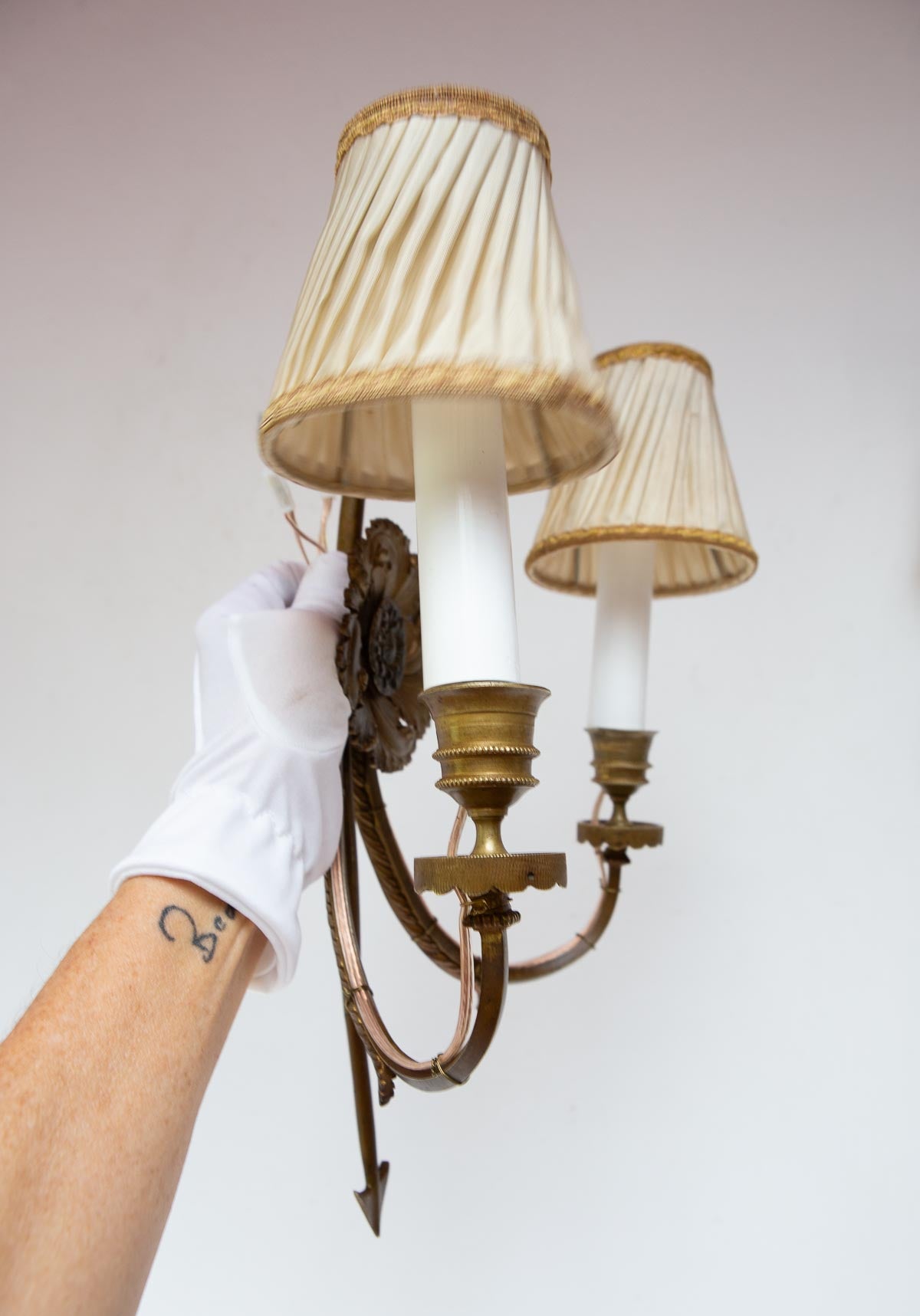 Funcionan perfectamente con 2 bombillas de rosca fina E14. En algunas fotos llevan unas pantallas antiguas para que te hagas una idea de todo su potencial.