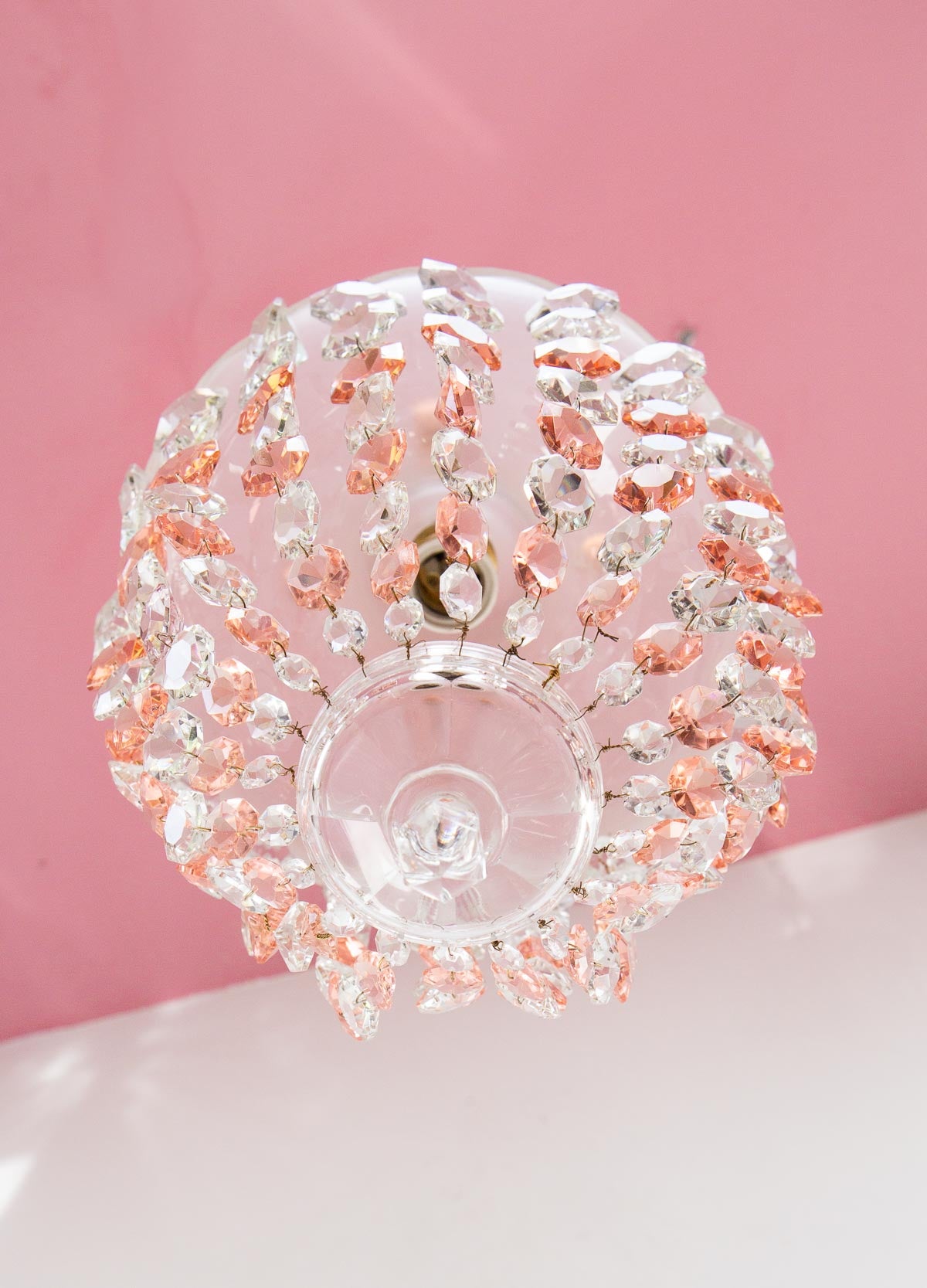 Lámpara techo globo cristales rosa c. 1960 (24 cm)