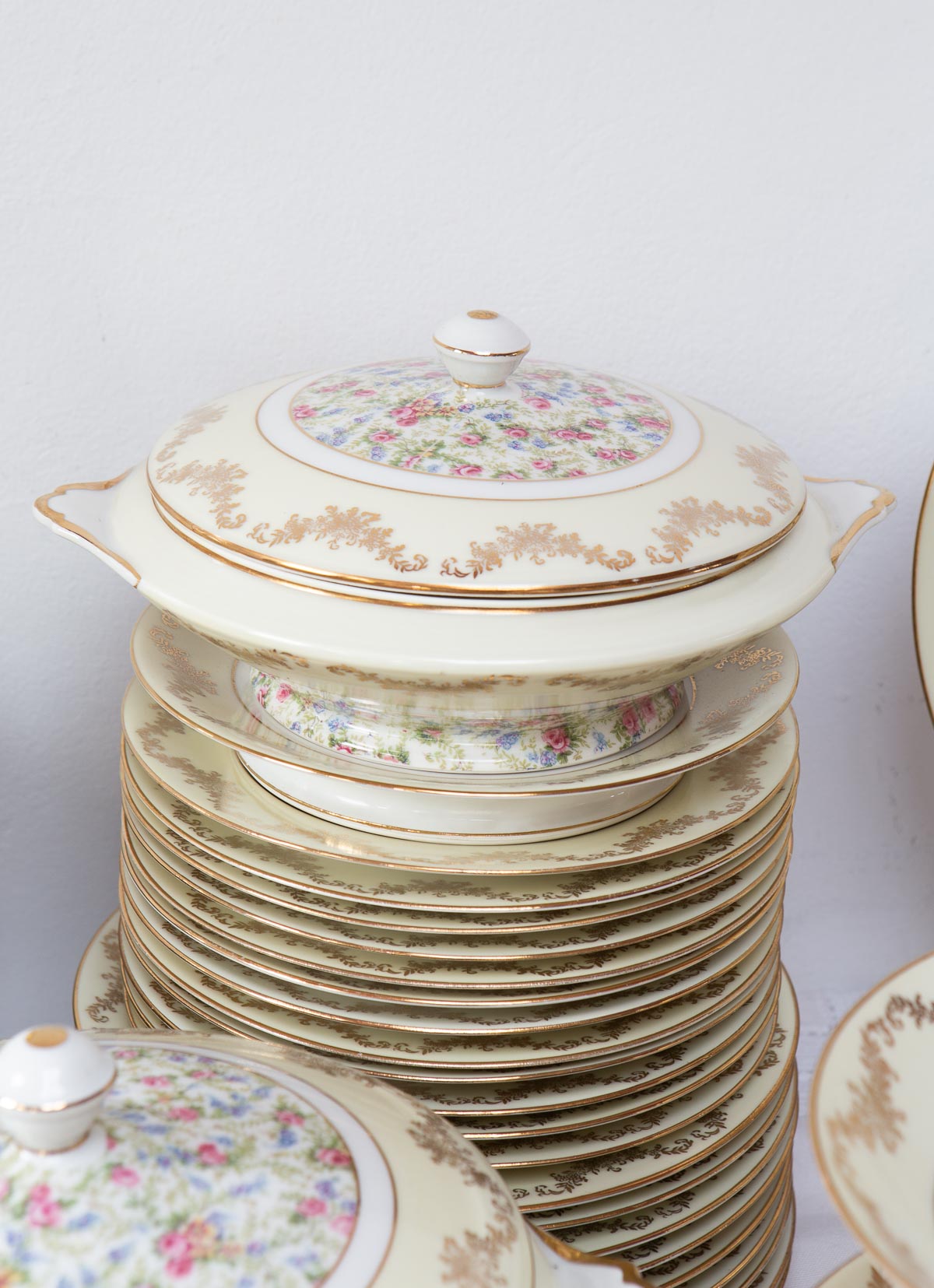 French porcelain dinner service por 12 by Unique Limoges. Very complete and in perfect condition. 61 pieces. We have a set of 10 dinner plates under ref. 6037 Dimensions and number of pieces: see description in Spanish. Shipping costs are not included.