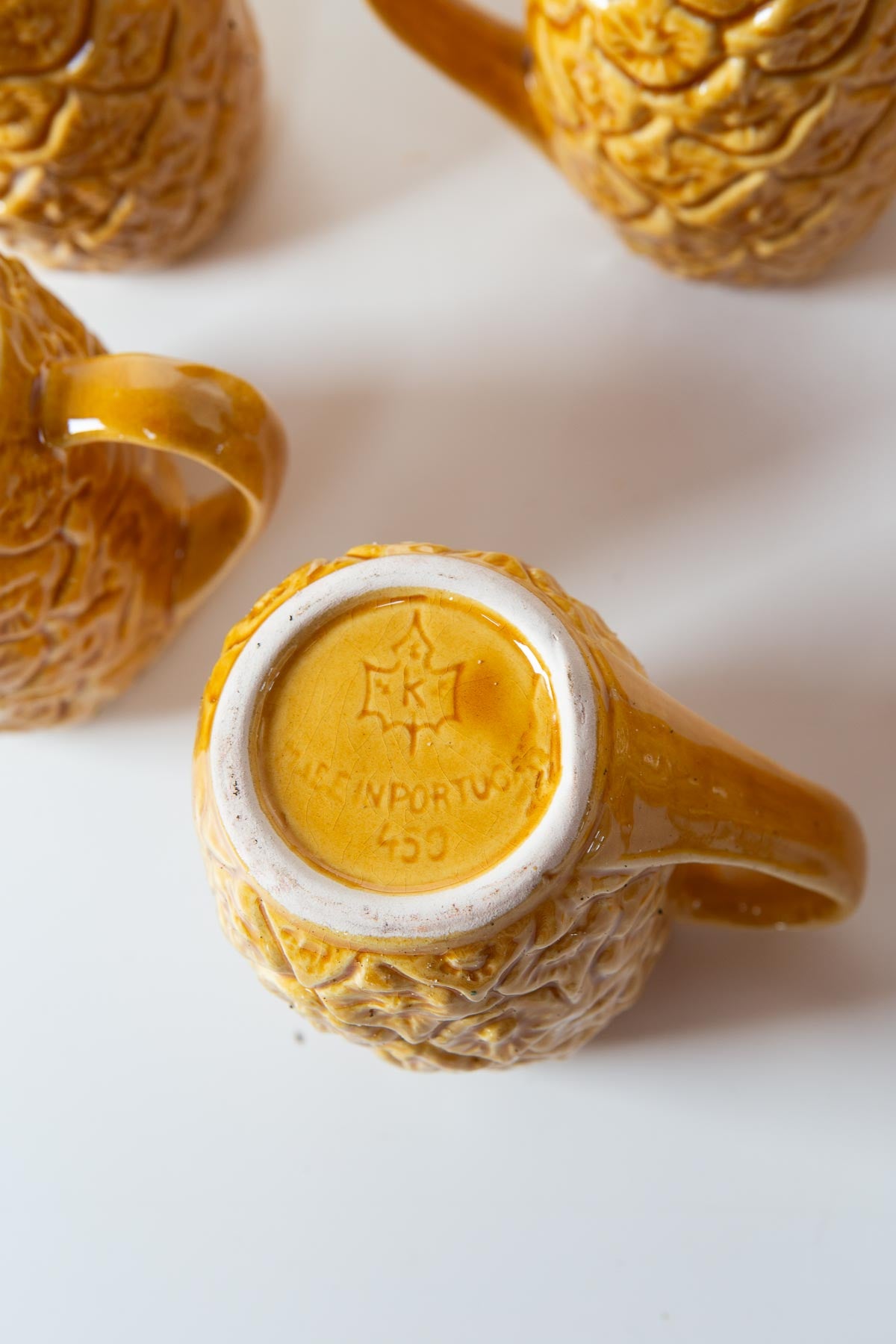 Juego de 6 tazas y jarra loza portuguesa Kerangol "Piña" (7 PIEZAS)