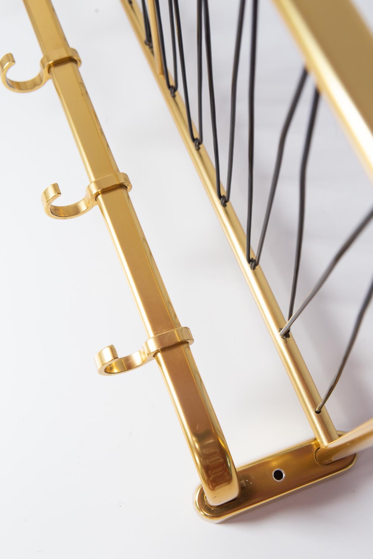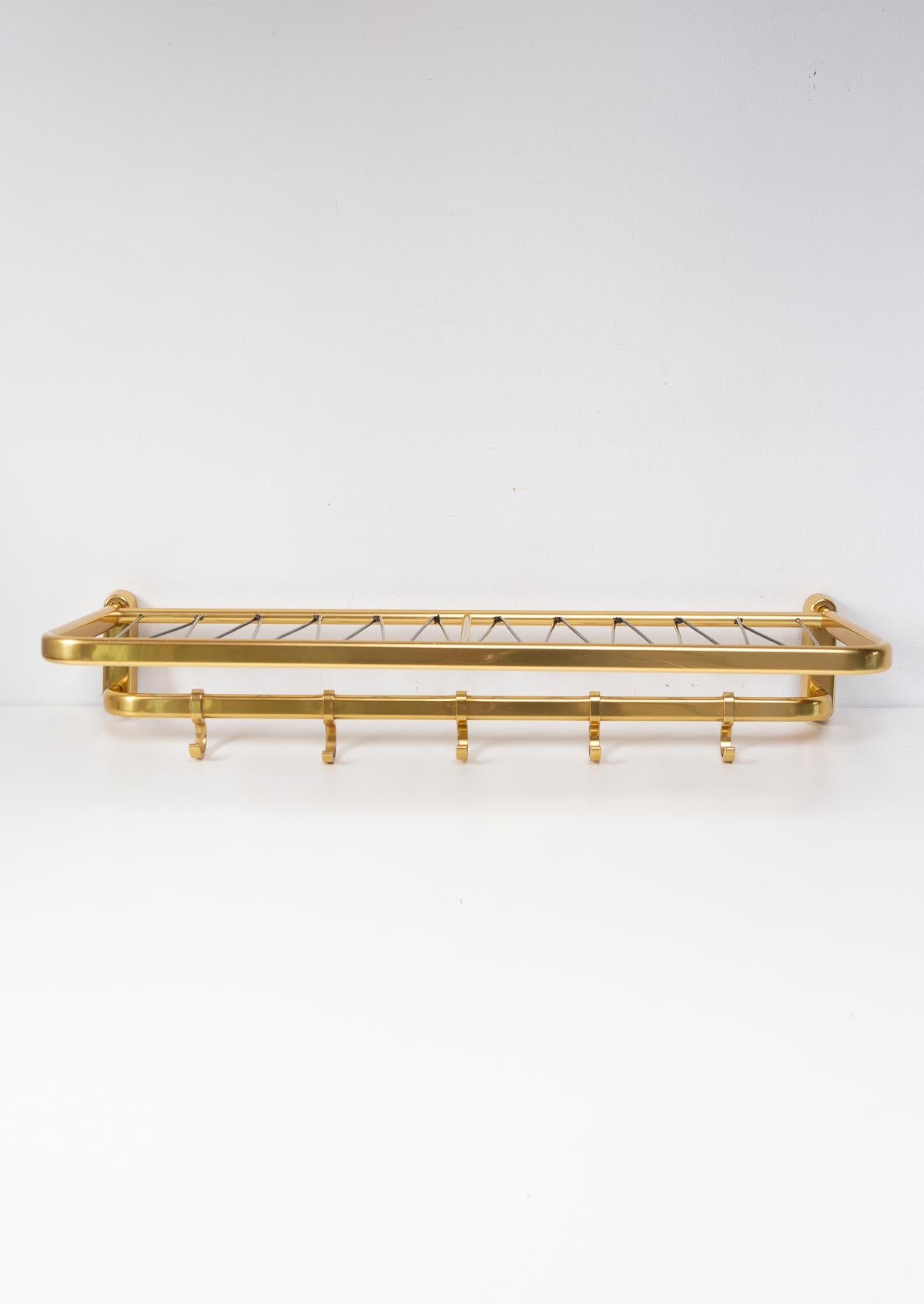 Vintage German wall rack. 60s approx. Gilded aluminium. 5 hooks. Dimensions: H 16 cm, L 63,5 cm, D 28 cm. We ship worldwide but shipping costs are not included in the price. Contact us for details.