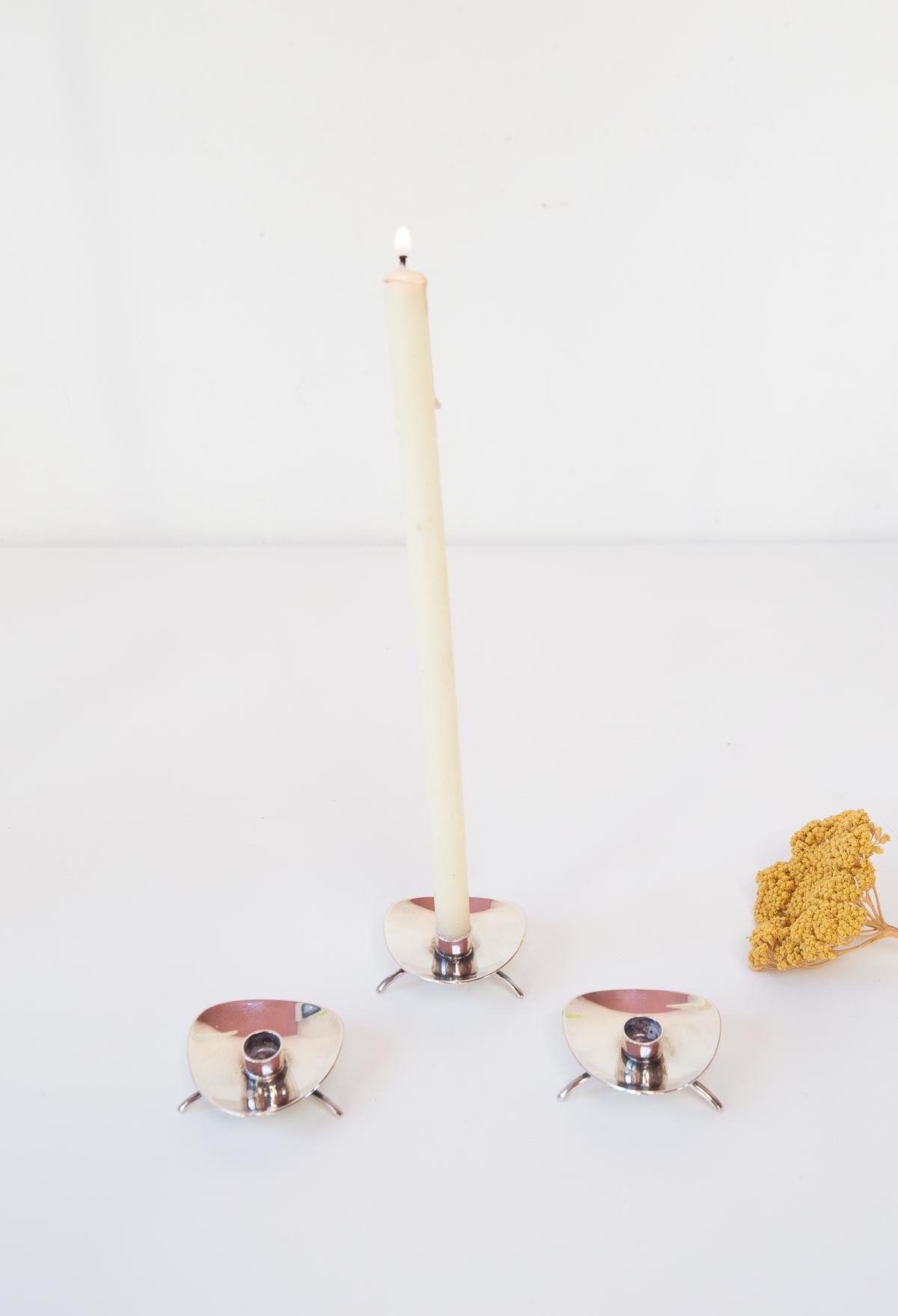 Suite de 3 petits bougeoirs Danois. Dimensions: