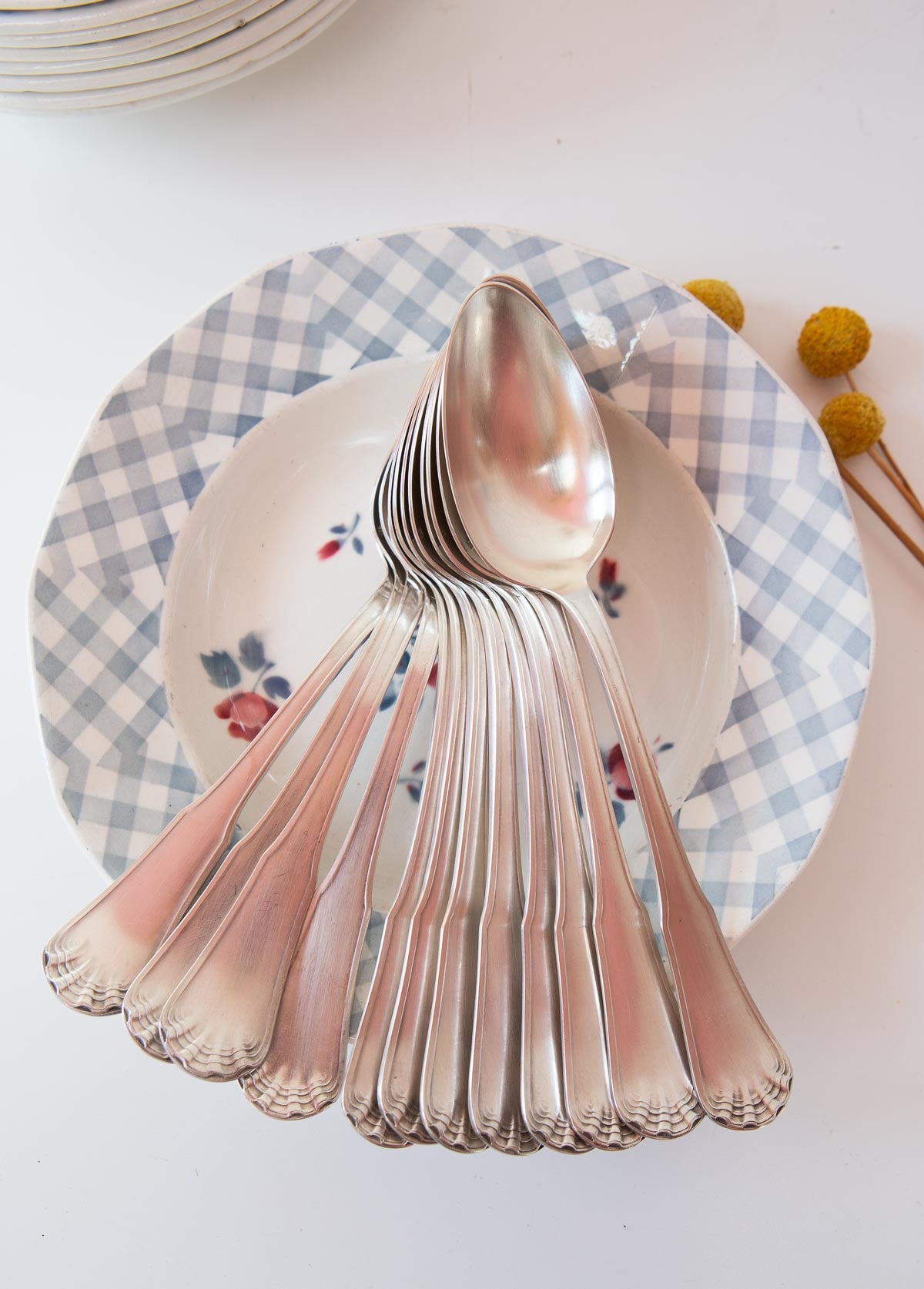 Juego 10 platos HONDOS loza francesa digoin VICHY AZUL c. 1960s (23 cm)