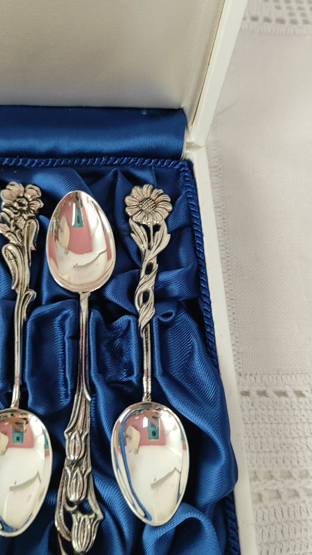 Juego 12 cucharillas plata sueca GEWE FLORES en estuche c. 1960 SIN ESTRENAR