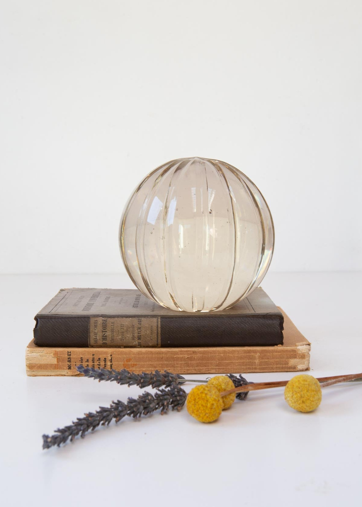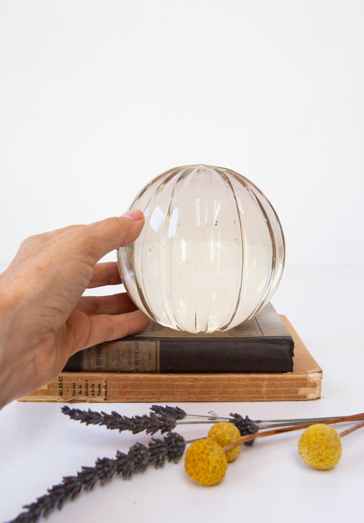 Vintage glass spheric paperweight. Great condition. Dimensions: 11,5 cm diameter. 2,1 kg . We ship worldwide. Shipping costs will be added at checkout.