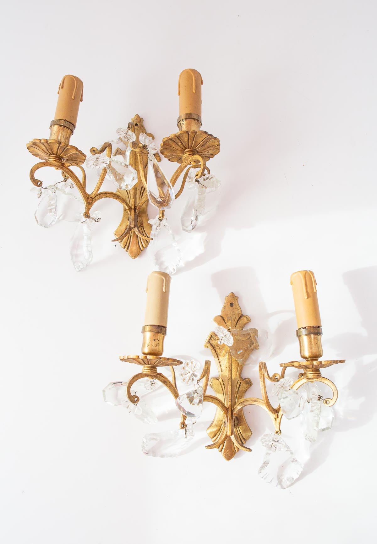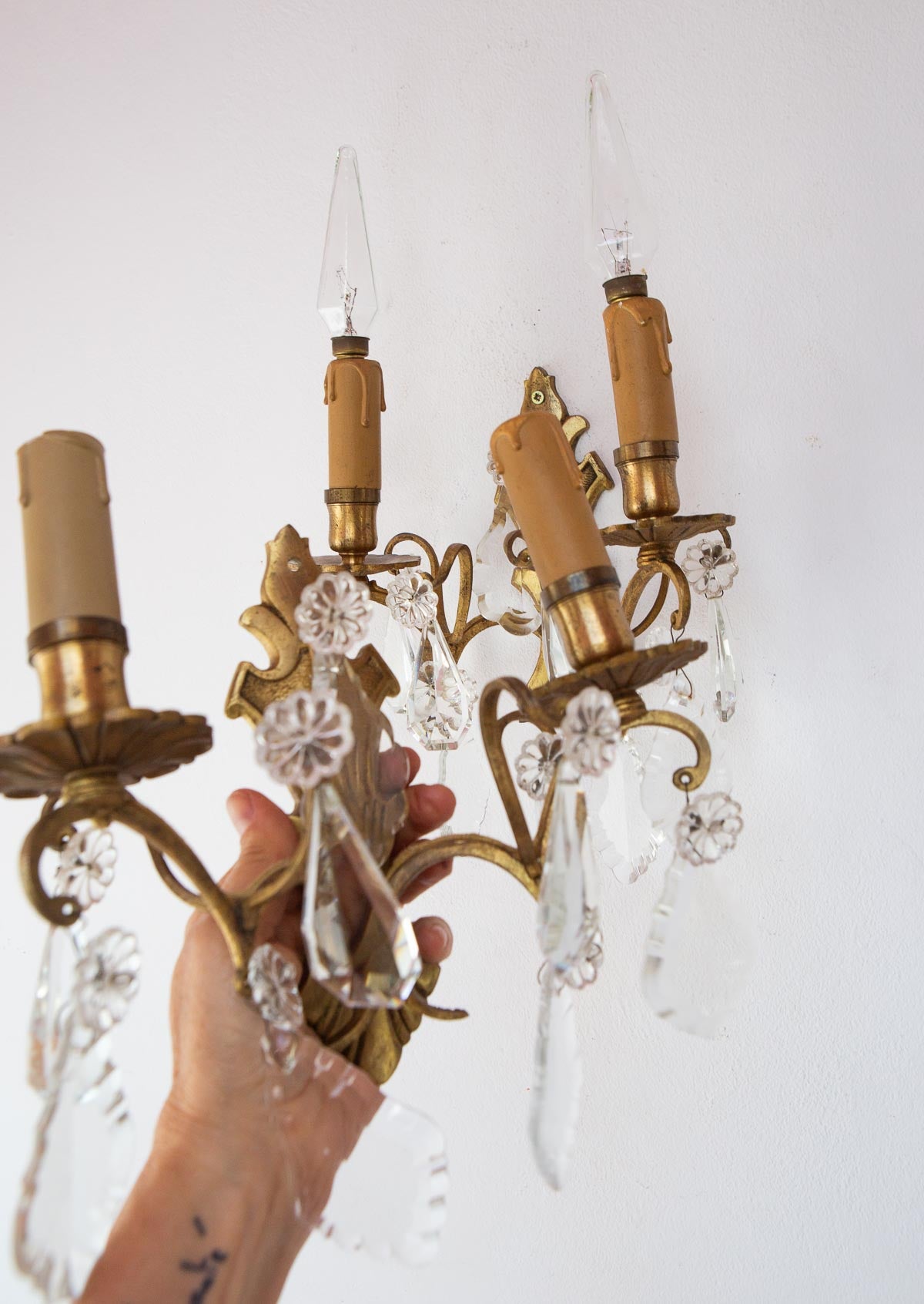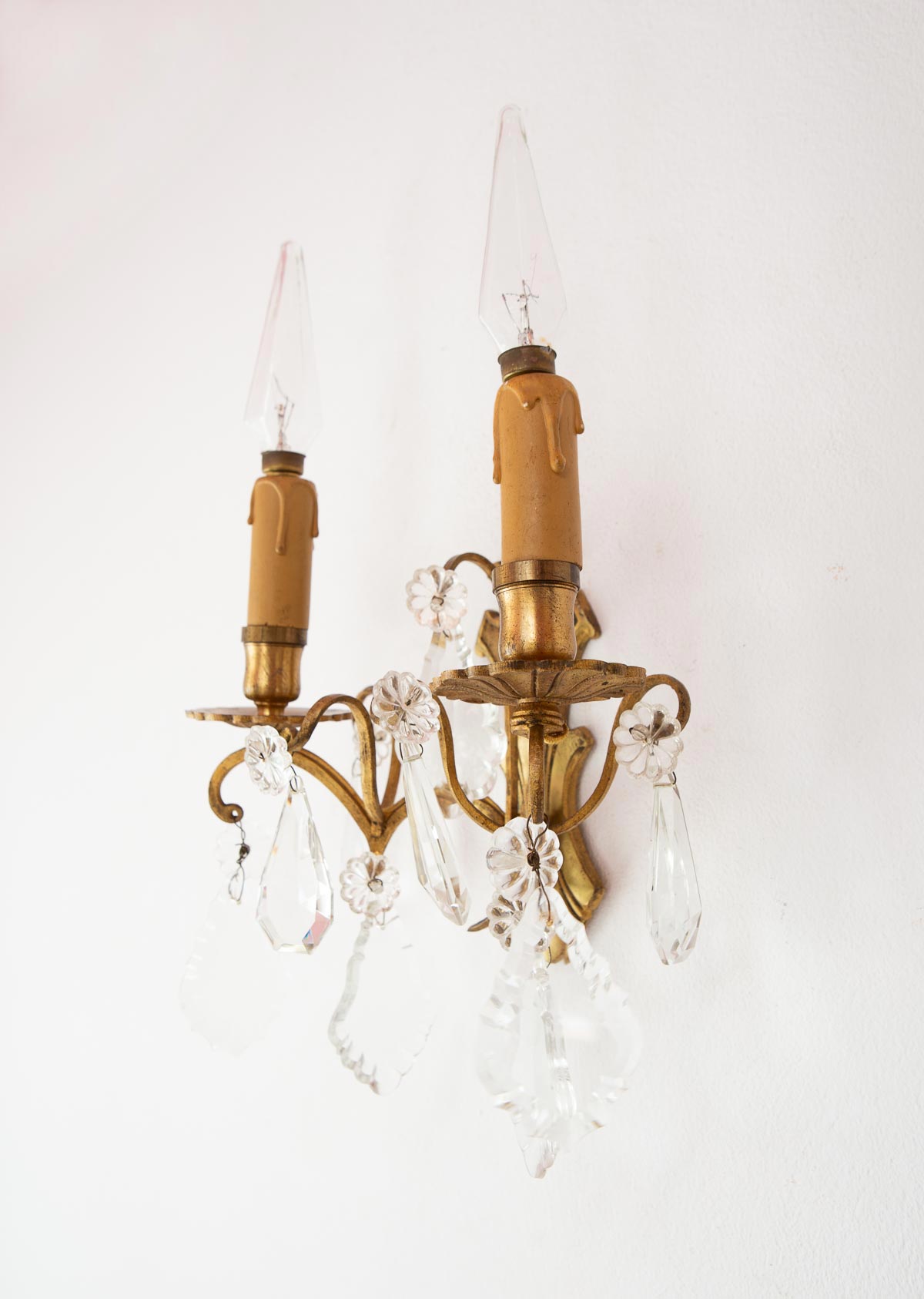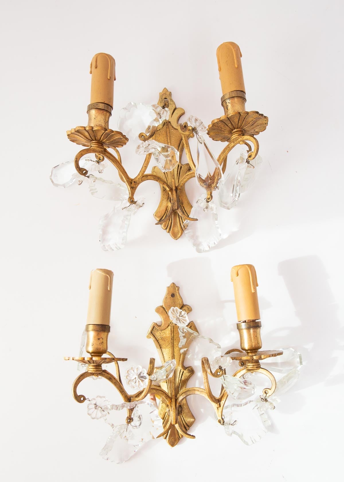 Pareja antiguos apliques franceses bronce dorado y cristales c. 1950