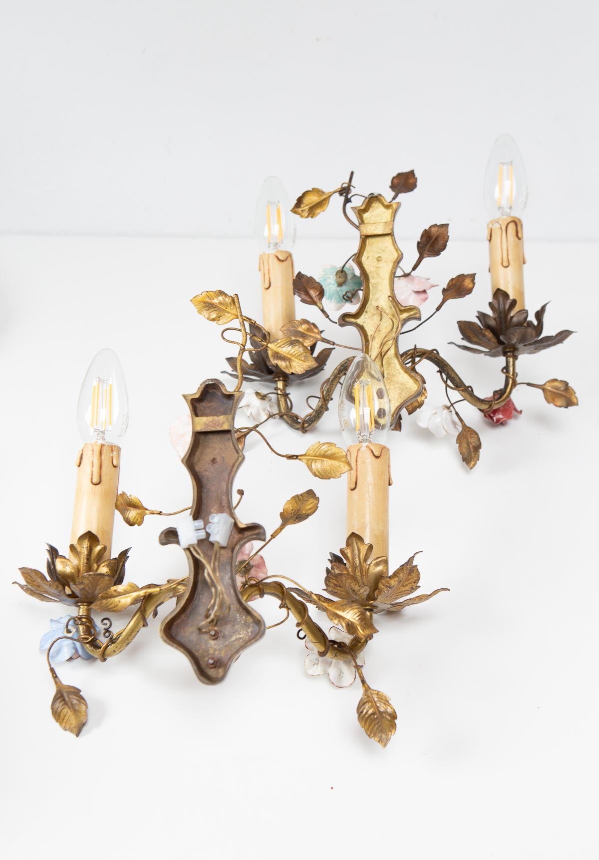 Pair of vintage French wall lights. Brass and porcelain flowers. c. 1950-60s. Great condition . Dimensions: 30*29*15 cm. We ship worldwide. Shipping costs will be added at checkout.