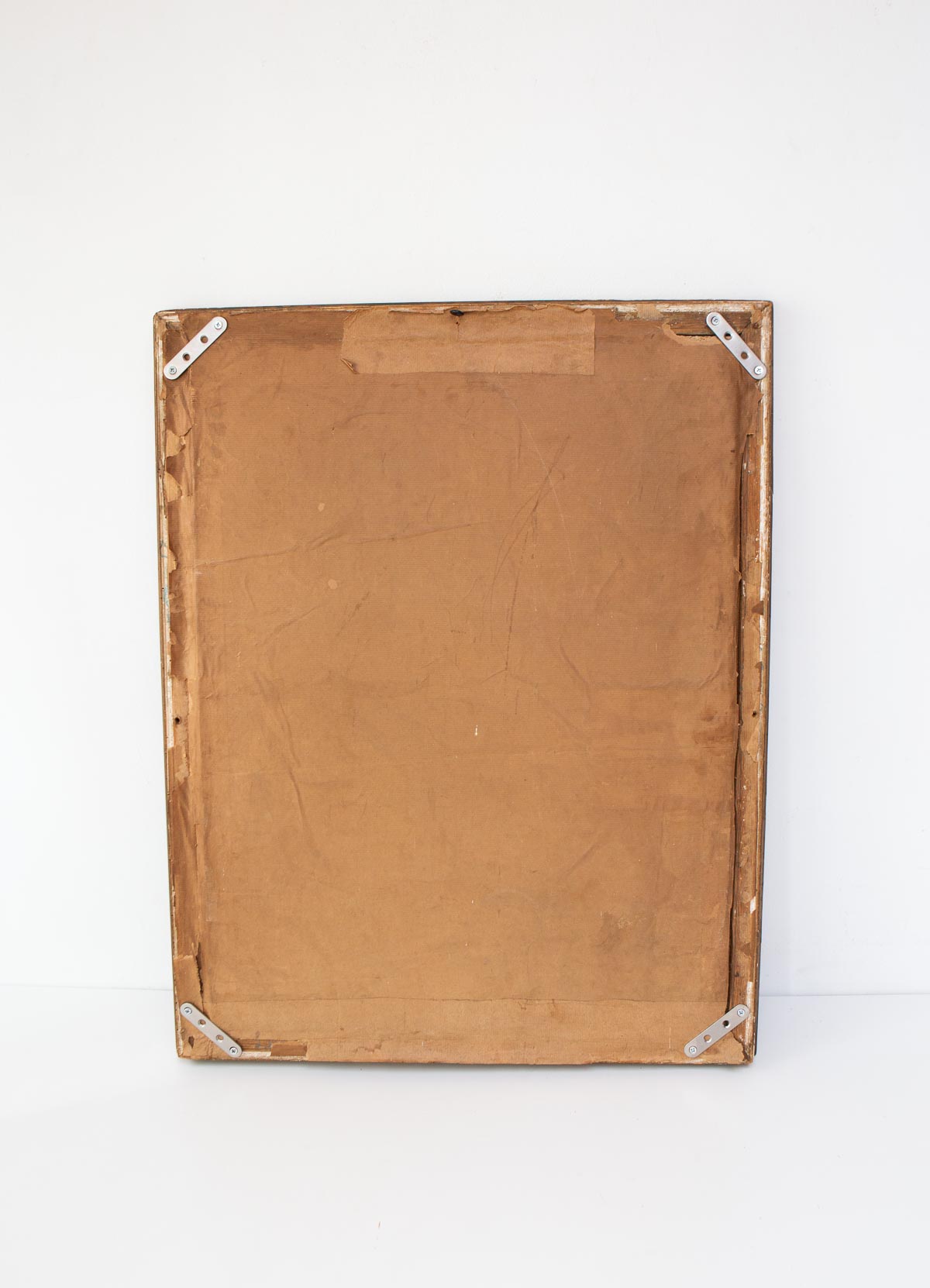 Se ha consolidado la trasera mediante travesaños de acero, con el fin de mantener firmemente unidos el cristal, la cartulina y el marco. La pieza se envía tal como se muestra en las imágenes.